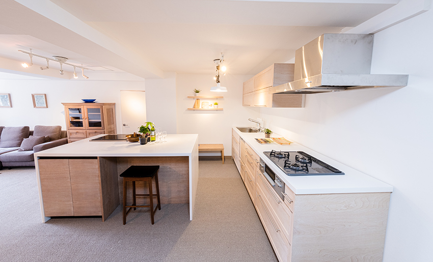 1.オーダー家具ショールーム1F ハウススタジオ オリジナルデザイン 北海道産樹種 旭川工場製作