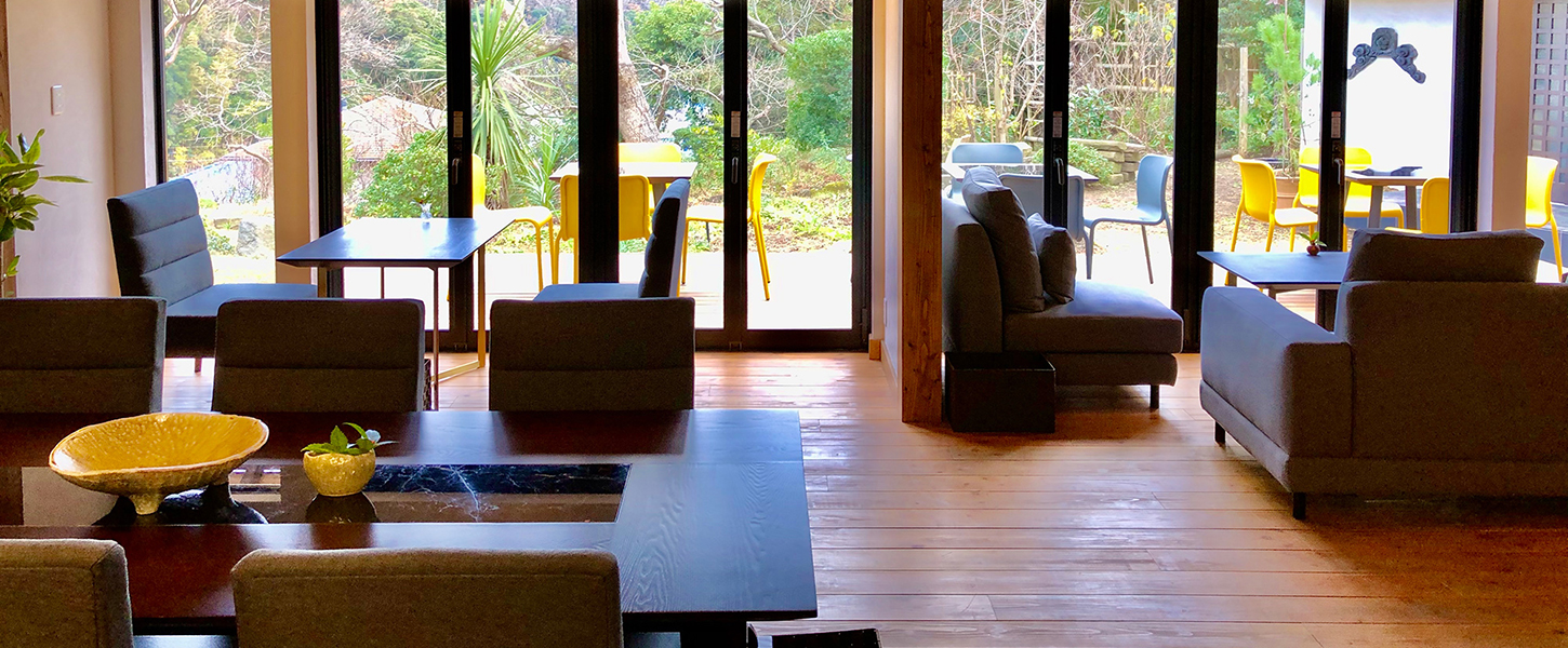 4.平屋古民家ベーカリー&カフェ 1500坪の敷地に手入れされた広大な庭と石畳、借景も見事